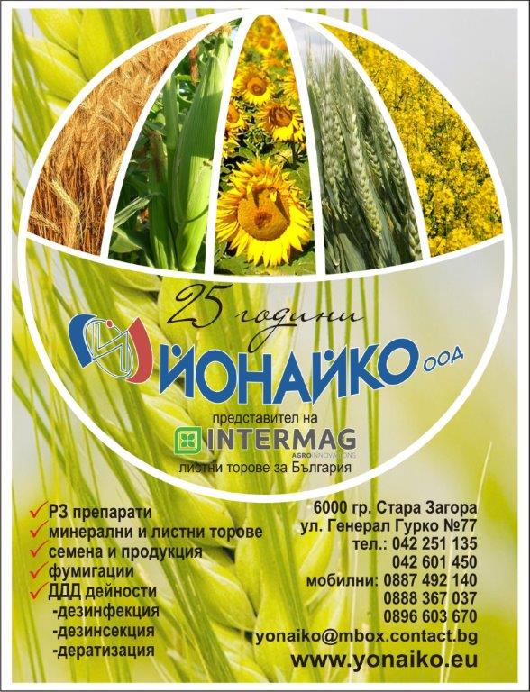"ЙОНАЙКО" ООД - гр. Стара Загора е лицензирано дружество за търговия с препарати за растителна защита, торове, семена и услуги. Фирмата е основана през 1992 година и има водещи позиции на пазара на агро- лрепарати и на пазара за услуги по дезинфекция, дезинсекция, дератизация, дезакаризация и фумигация. Разполага с необходимия потенциал от отлични специалисти-агрономи и дезинфектори и...