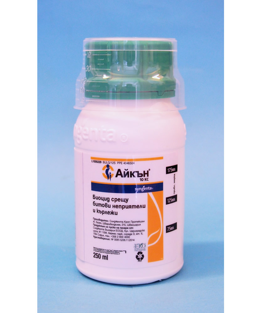 АЙКЪН 10 КС препарат против хлебарки, бълхи, кърлежи, мравки, мухи, дървеници, комари.